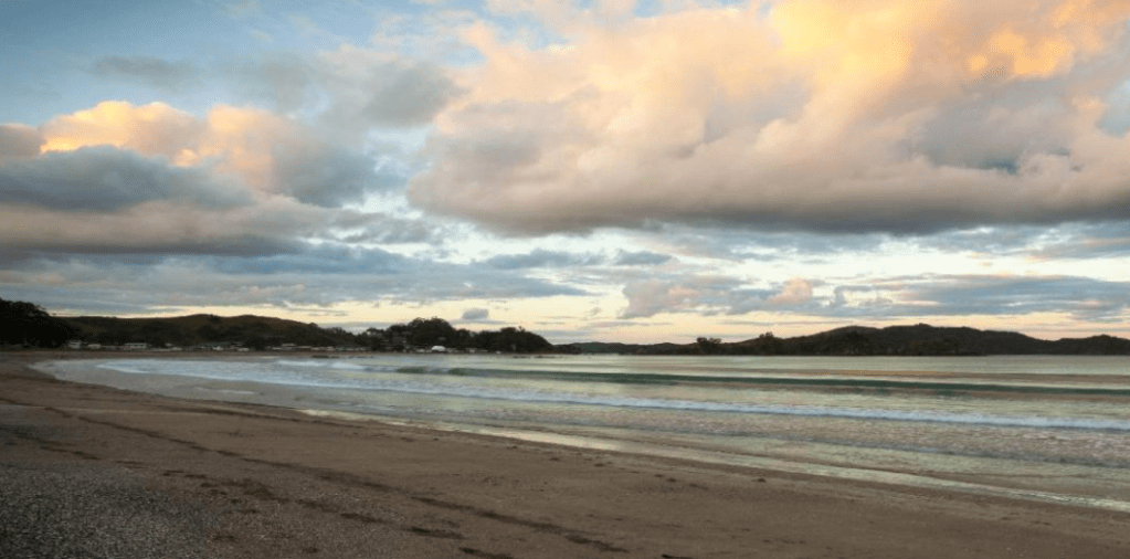 Paritutu stands guard at one end of the beach and Mt Taranaki rises behind us above farmland and rolling hills.